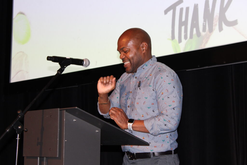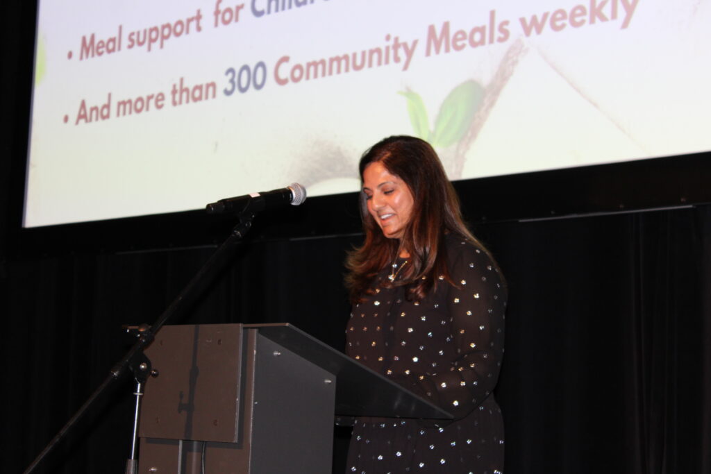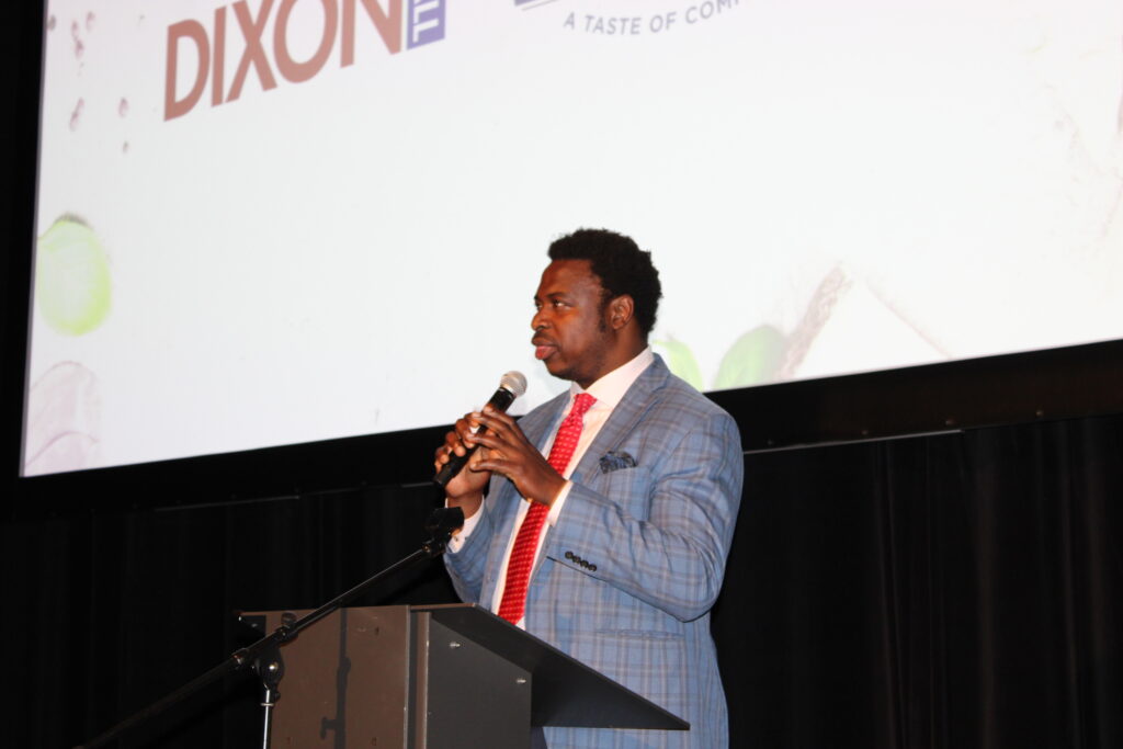 CEO Mina Mawani took the podium early in the evening to thank all in attendance for supporting Dixon Hall’s drive to gain funding for 30,000 meals for its food programs that serve clients of all ages, notably the Presenting Sponsor – The Paul Austen Family Foundation; Gold Plate Sponsors – Ed Clark and TD Bank; Silver Spoon Sponsor – McCarthy Tetrault Law Firm; Bronze Fork Sponsors – Bell Canada, Max Gotlieb, Daniels Corporation and HUB International. She also recognized and acknowledged the Dixonlicious Food and Beverage Partners and BPL, Live and Silent Auction Donors, the Board’s Fundraising Committee, and Staff and volunteers who were key to delivery of a successful, enjoyable fundraising experience. And, of course, the emcee for the evening, Thompson Egbo Egbo, who was never at a loss for words.